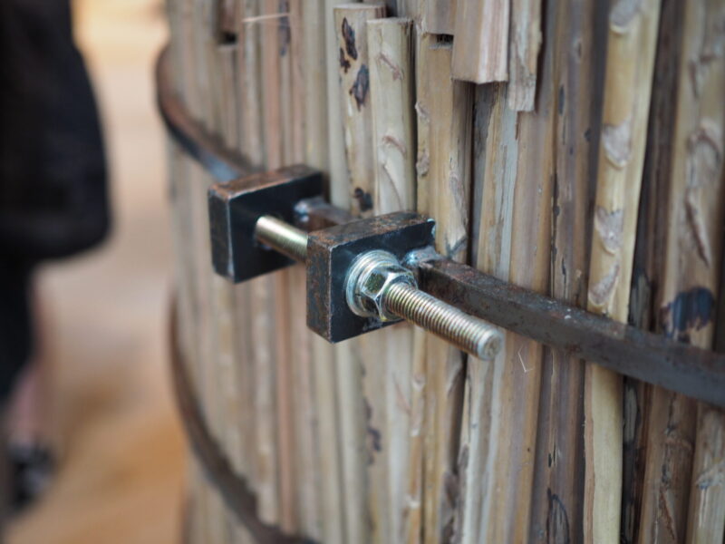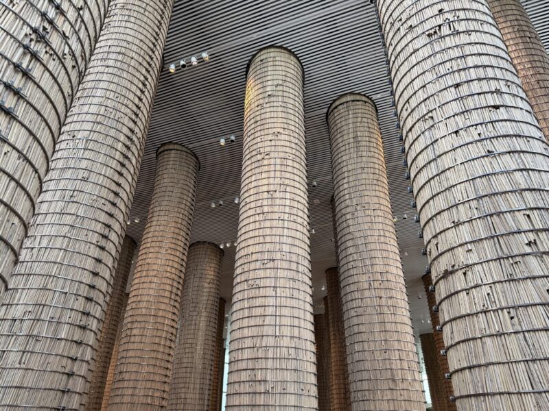 中は外観からも分かるような、木?竹?のようなものを束ねた柱が何本もそびえ立っていました。