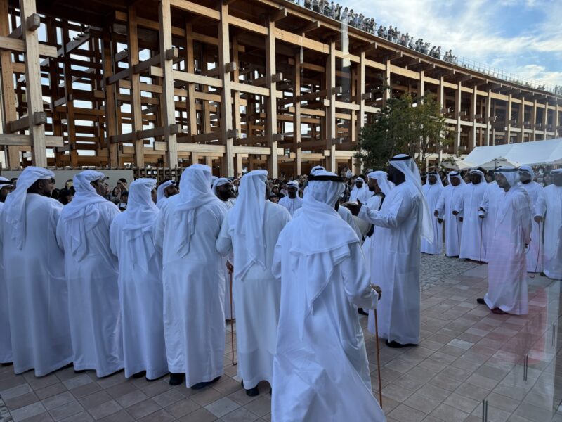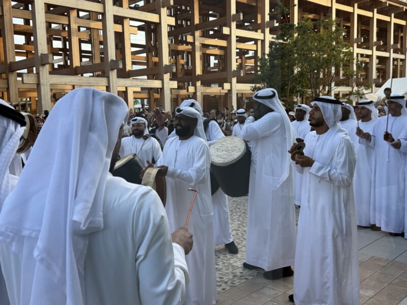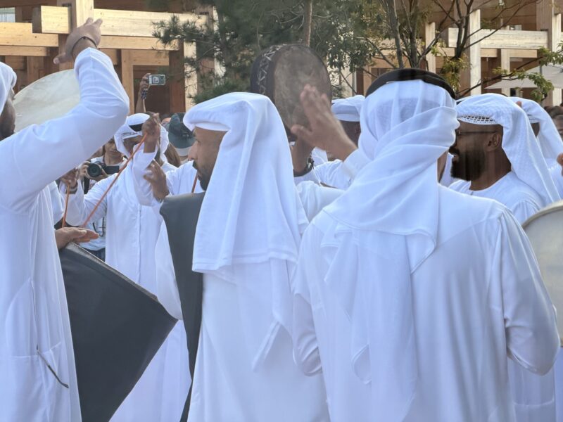 アラブ首長国連邦館では、現地の方々が館の前で「アヤラ」と呼ばれる伝統舞踏を披露してくれていました。